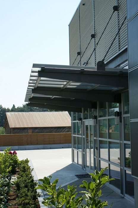 steel/wood structure with masonry + metal cladding